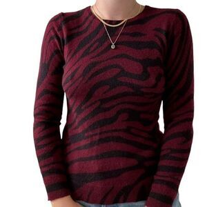 Charter Club 100% Cashmere Luxury Red Black Gothic Zebra Turtleneck Sweater Sz S