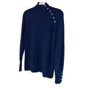 Charter Club 100% Cashmere Mock Neck Sweater Womens Medium Navy Blue Button Trim