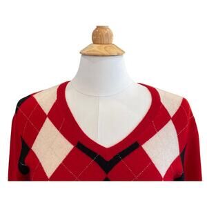 Charter Club 100% Cashmere Red Argyle Preppy V-Neck Sweater, Size L
