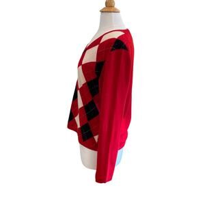 Charter Club Cashmere Red Argyle Preppy Sweater, Size Large