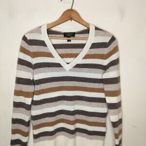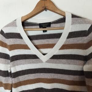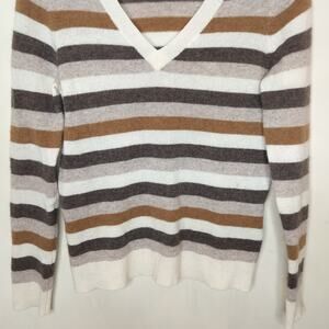 Charter Club 100% Cashmere Sweater Brown Beige Stripe