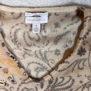 Charter Club 100% Cashmere Sweater Womens Medium Beige Paisley V Neck Soft