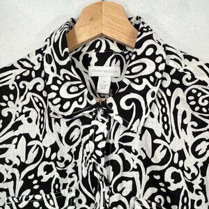 Charter Club 100% Linen Abstract Print Roll Tab Long Sleeve Button Up Shirt 14