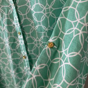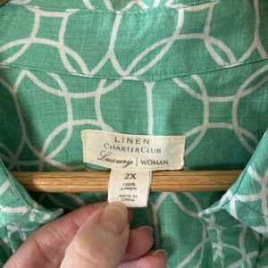 Charter Club 100% Linen Button Up Top Mint Green Roll Tab Sleeve Blouse Sz XXL