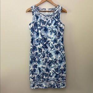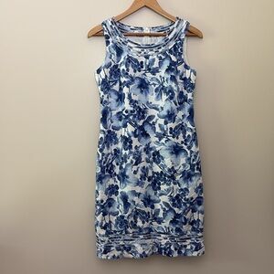 Charter Club 100% Linen Dress Sleeveless Blue Floral Costal Cottage Size 6