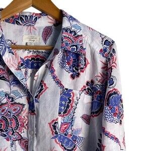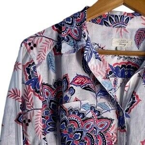 Charter Club 100% Linen Floral Print Button Down Shirt Size XL