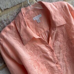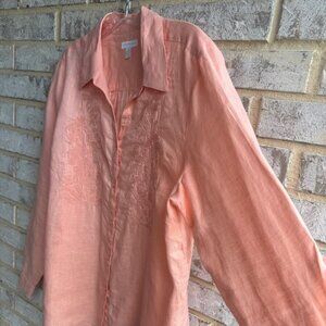 Charter Club 100% Linen Long Sleeve Embroidered Floral Shirt Women's Size XL.