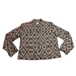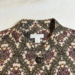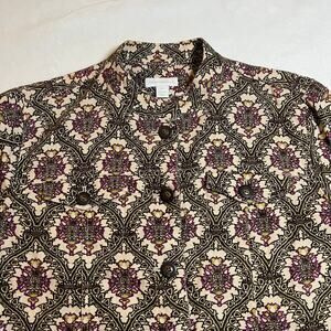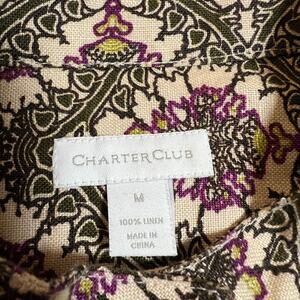 Charter Club 100% Linen Paisley Floral Print Button Up Jacket Size Medium Boho