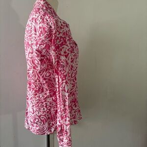 Charter Club 100% Linen Pink White Paisley Button Down Blouse Sz 4 Easter Floral