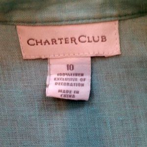 Charter Club 100% Linen Turquoise Blue Button Down Collarless TopSize 10
