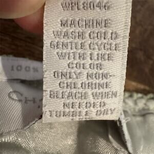 This has a pinhole next to the neckline; please see photo for details. Aside from that, it has regular wear from washing, but is in good preowned condition. It's very soft.