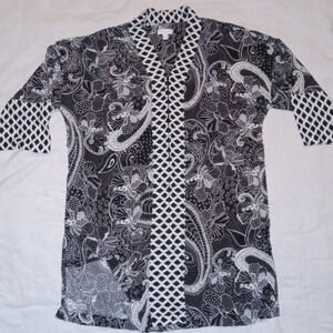 Charter Club 100% Rayon Black & White Front Partial Zip Robe size L