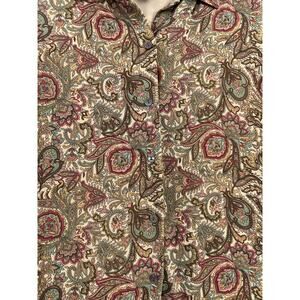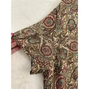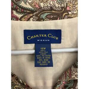 Charter Club 100% Silk Brown Paisley Top 18W 1X Fall Button Office