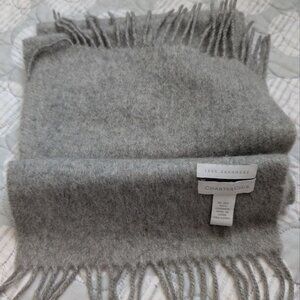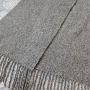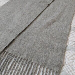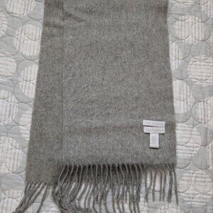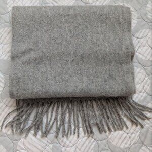 100 % Cashmere, gray color, nice to touch, soft and cozy scarf.