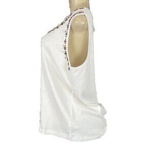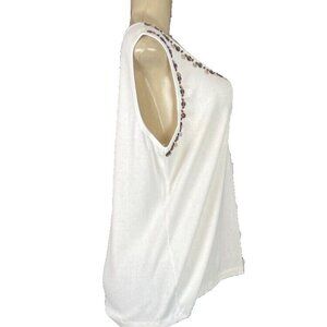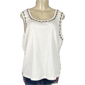 ITEM: Charter Club Plus 1X White Puka Shells- Beads Accent Scoop Neckline Ribbed 100% CottonTank Top