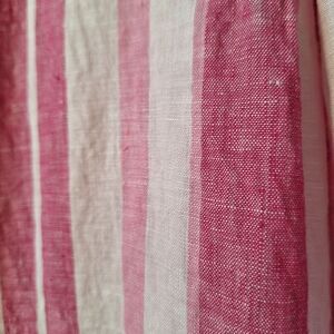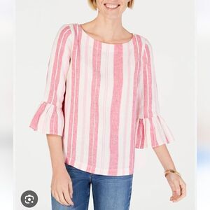 Charter Club 1X, White and pink, striped, linen top, crew neck, 3/4 sleeves, ruffle detail. Summer, Quiet luxury