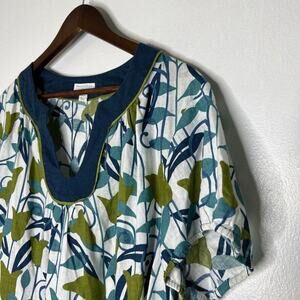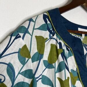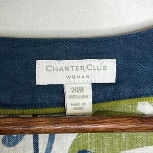 Charter Club Blue Floral 100% Linen Scoopneck Short Sleeve Blouse Plus Size 24W