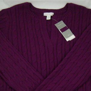 Charter Club Acai Berry Cable Knit Split-Neck Long Sleeve Sweater. Material is 85% Cotton, 15% Nylon.