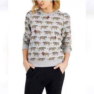 Take a walk on the wild side in this fashionable sweatshirt from Charter Club, updated with puffed shoulders and adorable bow appliqué.