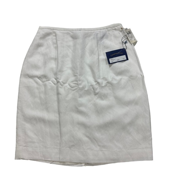 Charter Club April in Paris Women’s Ivory White Linen 55% Rayon 45% 1/4 Zippered Hooknand Closure Fully Lined Slit in the Back Mini Skirt 21”) Size 8. This skirt is new with tags. $89 MSRP. Easy: Throw on and go. Breezy: Breathable Linen Fabric. Beautiful!!