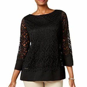 Charter Club Autumn Elegan Lace Over Pullover Top