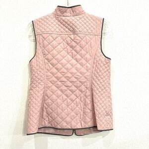 • Lightweight pink with gray trim quilted vest and gold-tone hardware