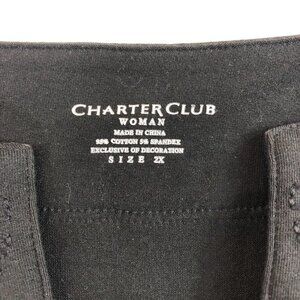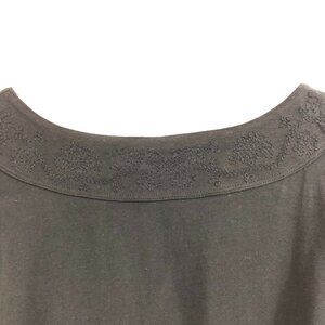 Charter Club Black 3/4 Sleeve V-Neck Blouse With Embroidered Neckline
