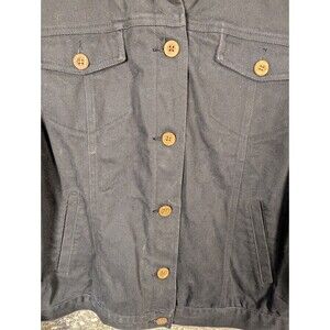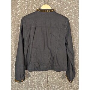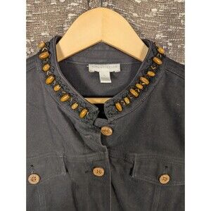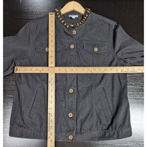 Charter Club Black Denim Jacket Women's L Beaded Accents on Collar/Sleeves