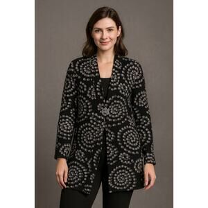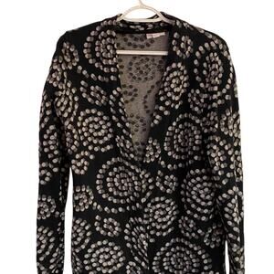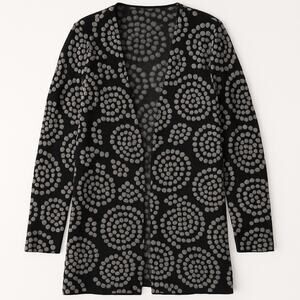 Charter Club Black Gray Dot Cardigan Women’s Size M Open Front No Closure