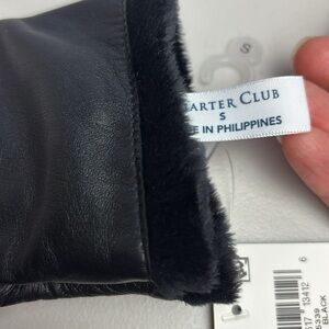 Charter Club Black Leather Faux Fur Lined Touchscreen Technology Gloves Winter