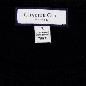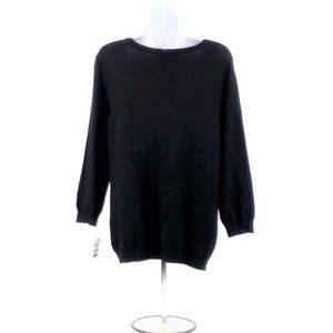 Charter Club Black Sparkling Stripes Embellished 3/4 Sleeve Sweater Womens LP Large Petite