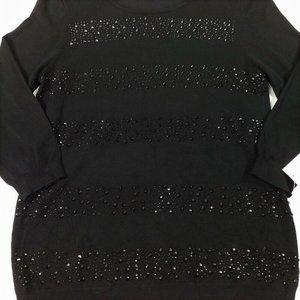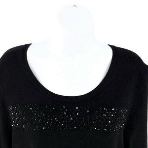 Charter Club Black Sparkling Stripes Embellished 3/4 Sleeve Sweater Womens LP