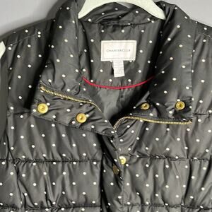 Charter Club Black and White Polka Dot Puffer Vest with Gold Zipper Size Large