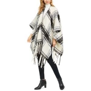 Charter Club Black and White SuperSoft Brushed Fringed Women's Wrap Shawl Poncho
