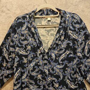 Charter Club Blouse Tunic Womens XXL Blue Paisley slinky flowy V-neck boho