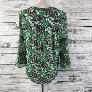 Charter Club Blouse Tunic size Small Green Pink Butterflies Modest Career Casual