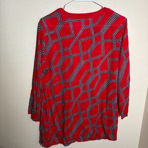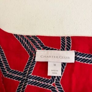 Charter Club Blouse Women's Medium Red V-Neck 3/4 Sleeve Career Shirt Top