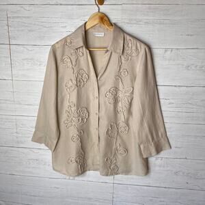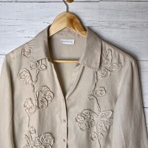 - Charter Club Blouse Womens Beige Raised Floral Design 100% Linen