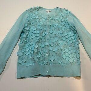 Charter Club Blue Chiffon 3D Floral Embellished Crew Neck Cardigan