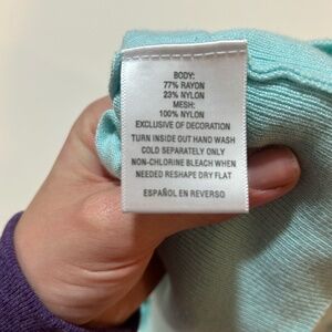 Crew neck, long sleeved, ribbed hem and cuffs.