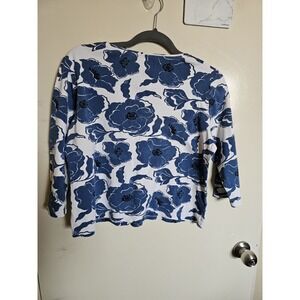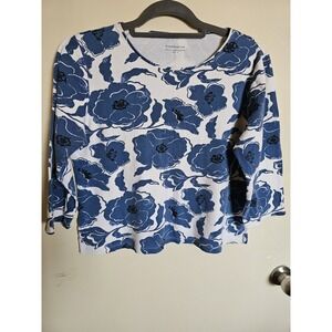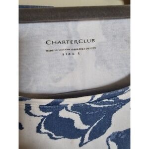 Charter Club Blue & White Floral Top Large 100% Pima Cotton