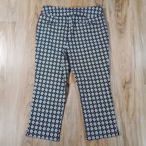 🔸️Charter Club Blue & White Geo Print Cambridge Slim Cropped Pants Size 10