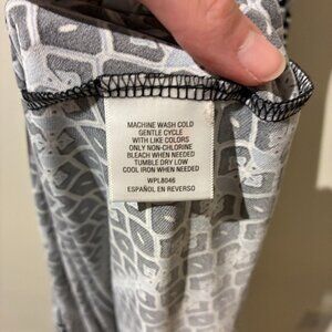 Details: Flowy professional dress with a bright pattern. Fabric has a bit of stretch. Comes with a belt, but dress does not have belt loops.