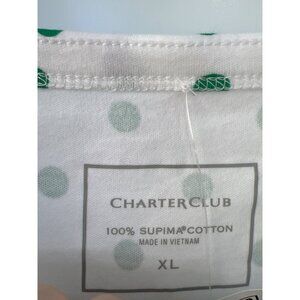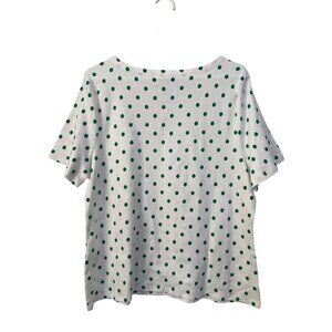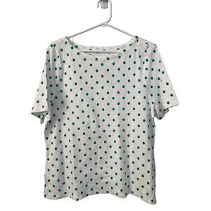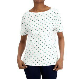 Charter Club Boat Neck Polka Dot T Shirt Womens XL Supima Cotton White Green NEW