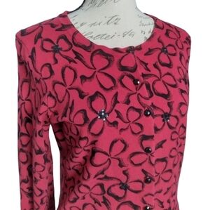 Charter Club "Bows" Red with Black Bows and Sequins Cardigan