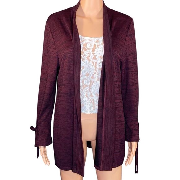 Charter Club Burgundy Open Front Cardigan Sweater Womens SZ Petite XL Tie Detail