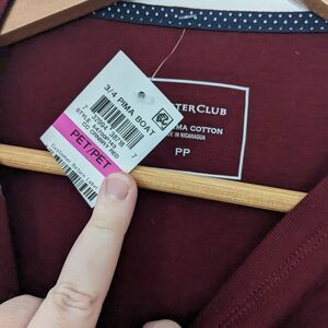 3/4 sleeve, burgundy, cute buttons at the neckline
