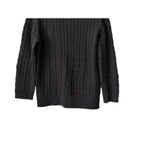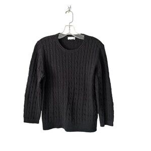Charter Club Cable Knit All Over 100% Cotton Pullover Crewneck Black Size Med