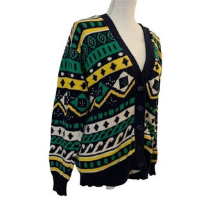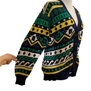 Charter Club Cardigan Green Navy Blue Yellow Geometric Stripes Oversized Small