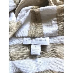 Charter Club Womens Cardigan Lightweight Long Sweater Striped Beige White Sz L Shipped with USPS First Class Mail. 62-545